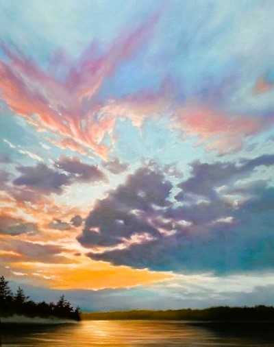 TOWARDS TWILIGHT 30 x 24 oil by Monique Legault.
